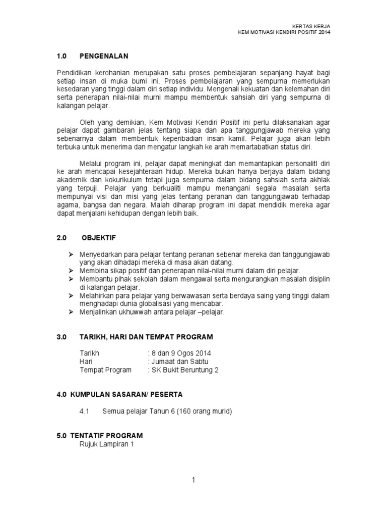 Muat turun halaman 1-7 di AnyFlip. Kertas kerja kem motivasi 2012. View KERTAS KERJA KEM JATI DIRI from BUSINESS M 243 at MARA University of Technology.